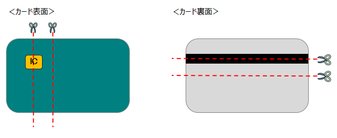 特に、カード番号や氏名、ICチップなど重要なデータが記録されている箇所は細かく切断してください。