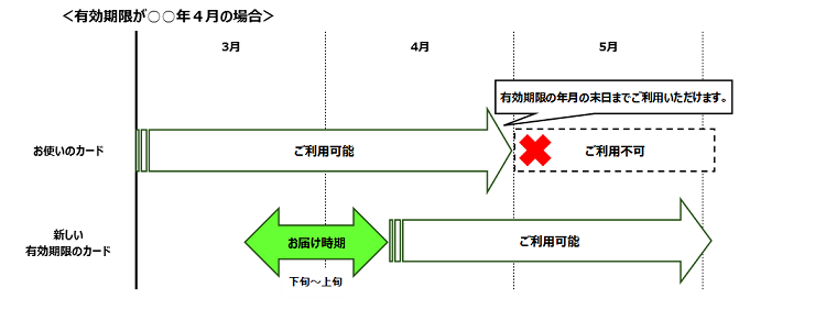 今までお使いのカードは有効期限の翌月1日からご利用いただけません。