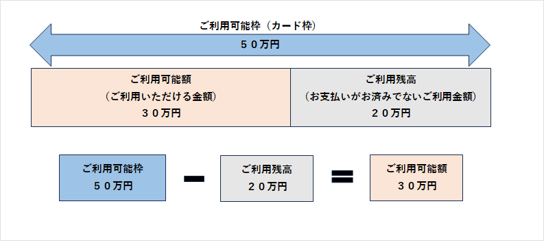 「ご利用可能枠」からカードショッピングおよびカードキャッシングのご利用残高を差し引いた額のことで、現時点においてカードをご利用いただける金額です。